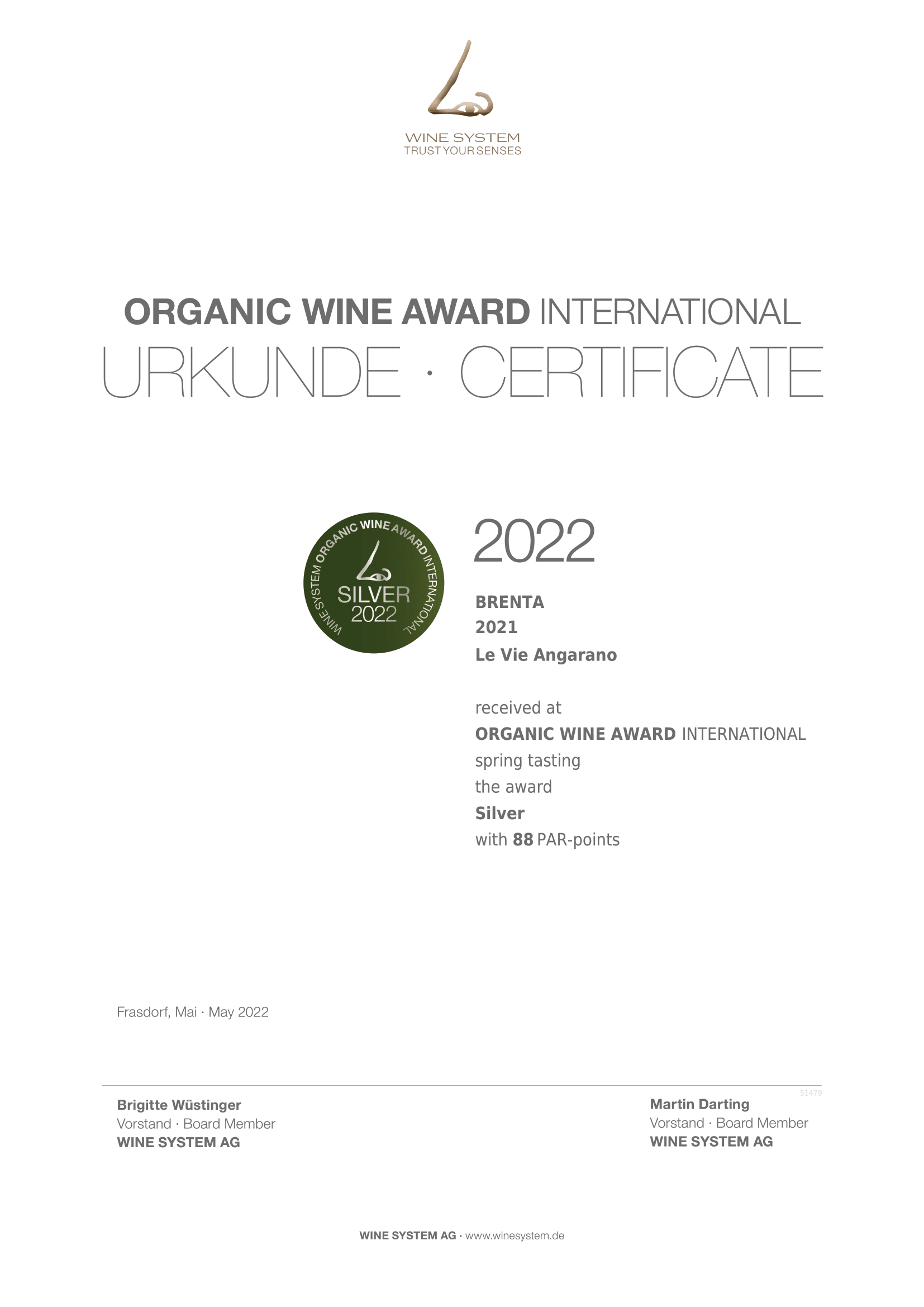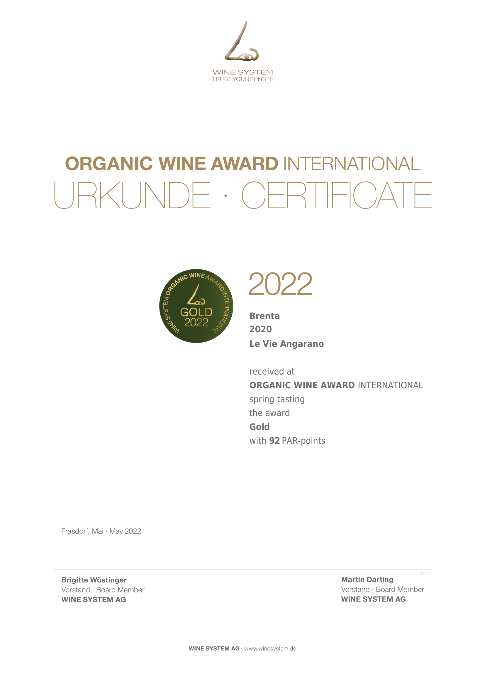 La commissione di Wine System AG dell’International Organic Wine Prize 2022 / BioWeinPreis ci premia alla grande!